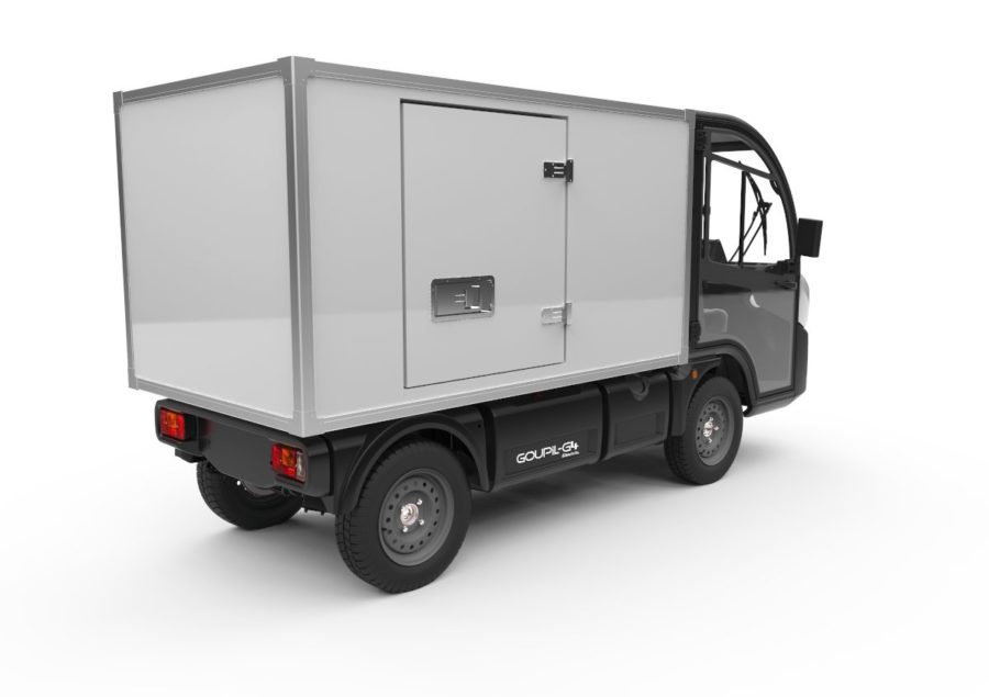 Goupil G2 finns både med lastflak med nedfällbara lämmar samt ett utförande med box försedd med valfritt antal jalusier. Hastigheten är upp till 30 km/h.