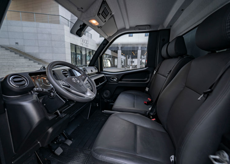 Komfortstolar, servostyrning, digital instrumentpanel, uppvärmd framruta, Webasto värmare, luftkonditionering, backkamera är några av de tillbehör ni kan beställa.